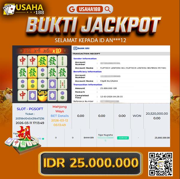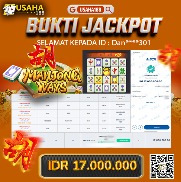 USAHA188 Merupakan Situs Slot Gacor Terpercaya Yang Kembali Menghadirkan Kemenangan Murni Pada Member As***ms Pada Permainan Mahjong Ways Dengan Total Kemenangan 16.000.000,- Dibayar Penuh Tanpa Potongan