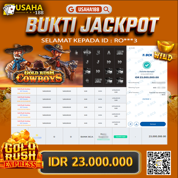 USAHA188 Merupakan Situs Slot Gacor Terpercaya Yang Kembali Menghadirkan Kemenangan Murni Pada Member R*****2 Pada Permainan Wild Bandito Dengan Total Kemenangan Rp. 30.000.000,- Dibayar Penuh Tanpa Potongan