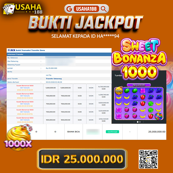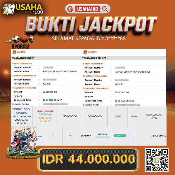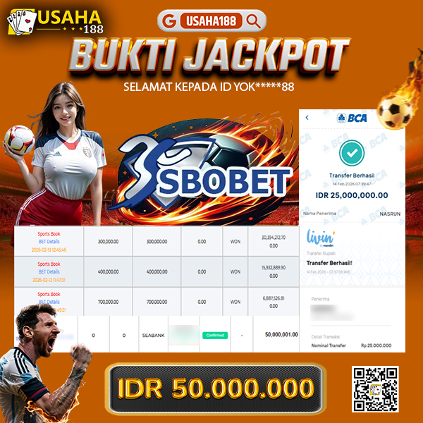 USAHA188 Merupakan Situs Slot Gacor Terpercaya Yang Kembali Menghadirkan Kemenangan Murni Pada Member 12***w Pada Permainan Sports Ibc Dengan Total Kemenangan 14.500.000,- Dibayar Penuh Tanpa Potongan