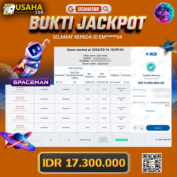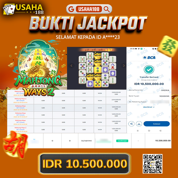 USAHA188 Merupakan Situs Slot Gacor Terpercaya Yang Kembali Menghadirkan Kemenangan Murni Pada Member O*****7 Pada Permainan Mahjong Ways 2 Dengan Total Kemenangan 17.200.000,- Dibayar Penuh Tanpa Potongan