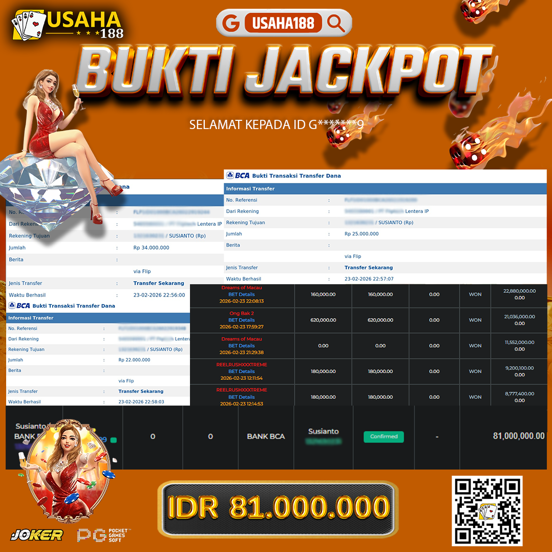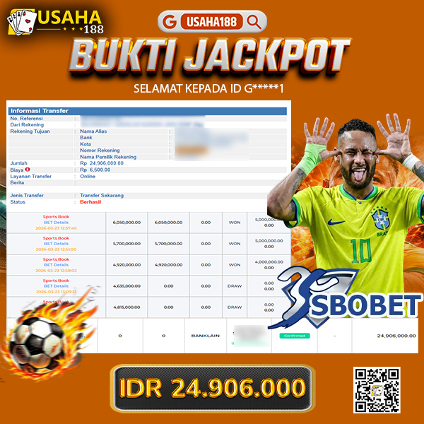 USAHA188 Merupakan Situs Slot Gacor Terpercaya Yang Kembali Menghadirkan Kemenangan Murni Pada Member G*****1 Pada Permainan Sbobet Dengan Total Kemenangan Rp. 24.906.000,- Dibayar Penuh Tanpa Potongan