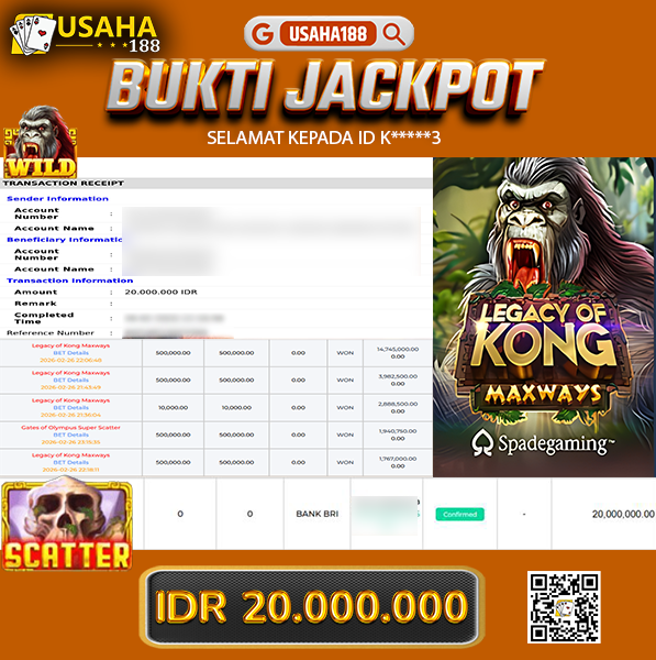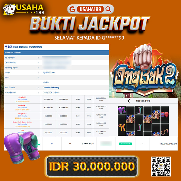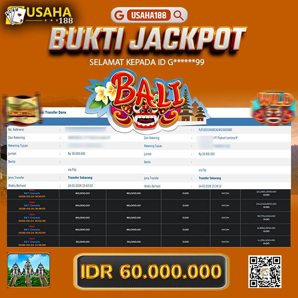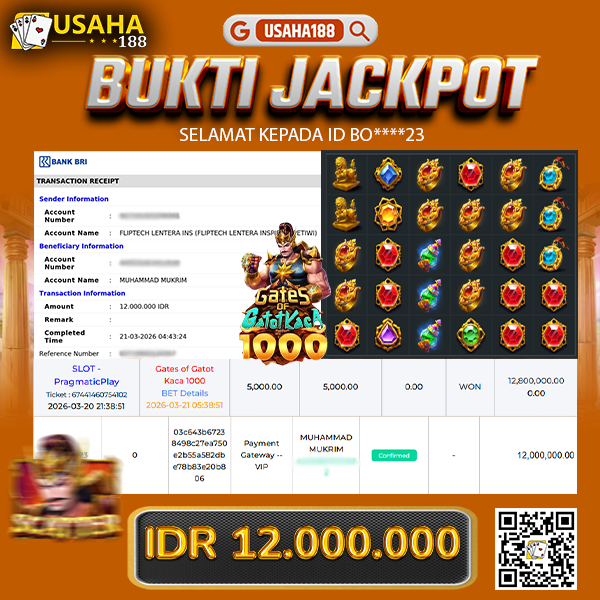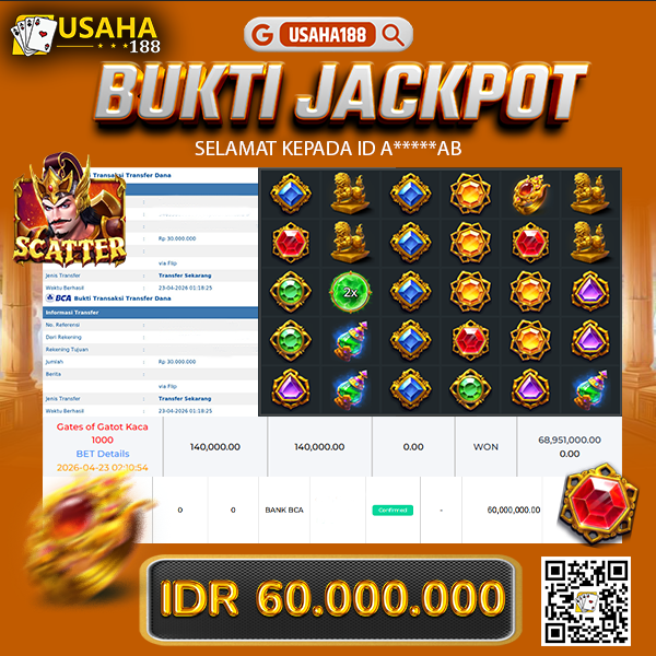USAHA188 Merupakan Situs Slot Gacor Terpercaya Yang Kembali Menghadirkan Kemenangan Murni Pada Member A*****ab Pada Permainan Gates Of Gatot Kaca 1000 Dengan Total Kemenangan 60.000.000,- Dibayar Penuh Tanpa Potongan