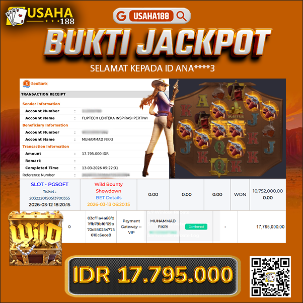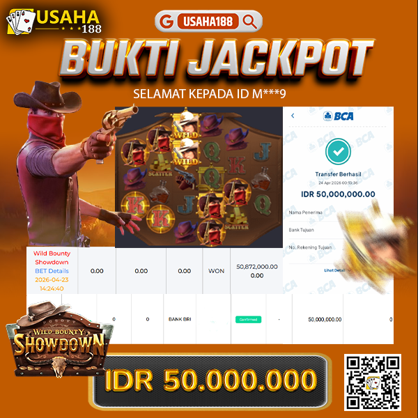USAHA188 Merupakan Situs Slot Gacor Terpercaya Yang Kembali Menghadirkan Kemenangan Murni Pada Member M***9 Pada Permainan Wild Bounty Showdown Dengan Total Kemenangan 50.000.000,- Dibayar Penuh Tanpa Potongan