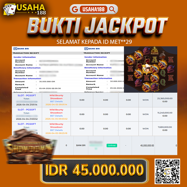 USAHA188 Merupakan Situs Slot Gacor Terpercaya Yang Kembali Menghadirkan Kemenangan Murni Pada Member Met**29 Pada Permainan Wild Bounty Showdown Dengan Total Kemenangan 45.000.000,- Dibayar Penuh Tanpa Potongan