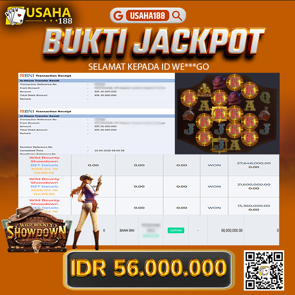 USAHA188 Merupakan Situs Slot Gacor Terpercaya Yang Kembali Menghadirkan Kemenangan Murni Pada Member We***go Pada Permainan Wild Bounty Showdown Dengan Total Kemenangan 56.000.000,- Dibayar Penuh Tanpa Potongan
