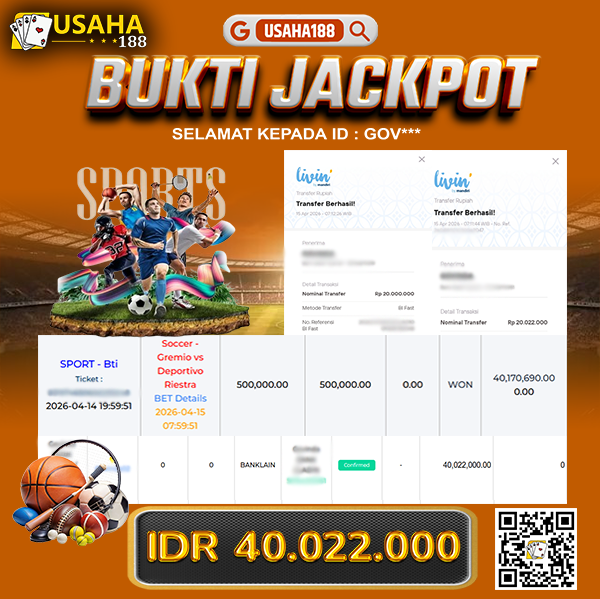 USAHA188 Merupakan Situs Slot Gacor Terpercaya Yang Kembali Menghadirkan Kemenangan Murni Pada Member Gov*** Pada Permainan Sports Bti Dengan Total Kemenangan 40.022.000,- Dibayar Penuh Tanpa Potongan