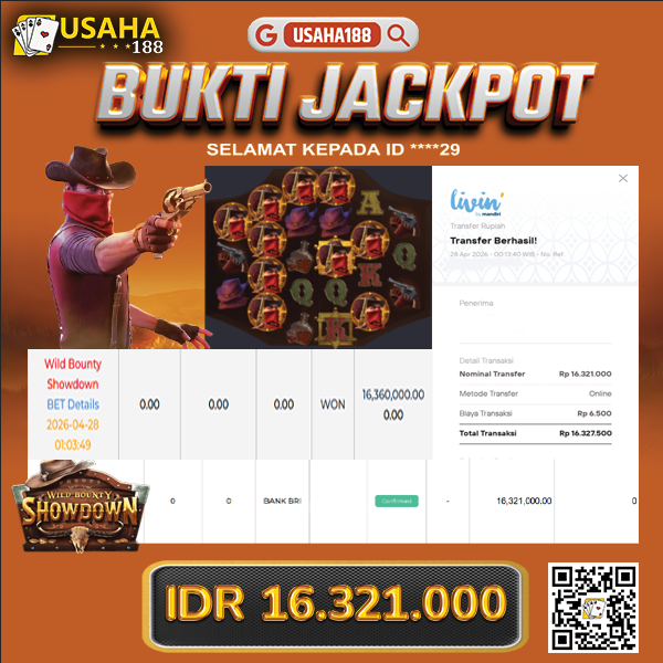 USAHA188 Merupakan Situs Slot Gacor Terpercaya Yang Kembali Menghadirkan Kemenangan Murni Pada Member *****29 Pada Permainan Wild Bounty Showdown Dengan Total Kemenangan 16.321.000,- Dibayar Penuh Tanpa Potongan
